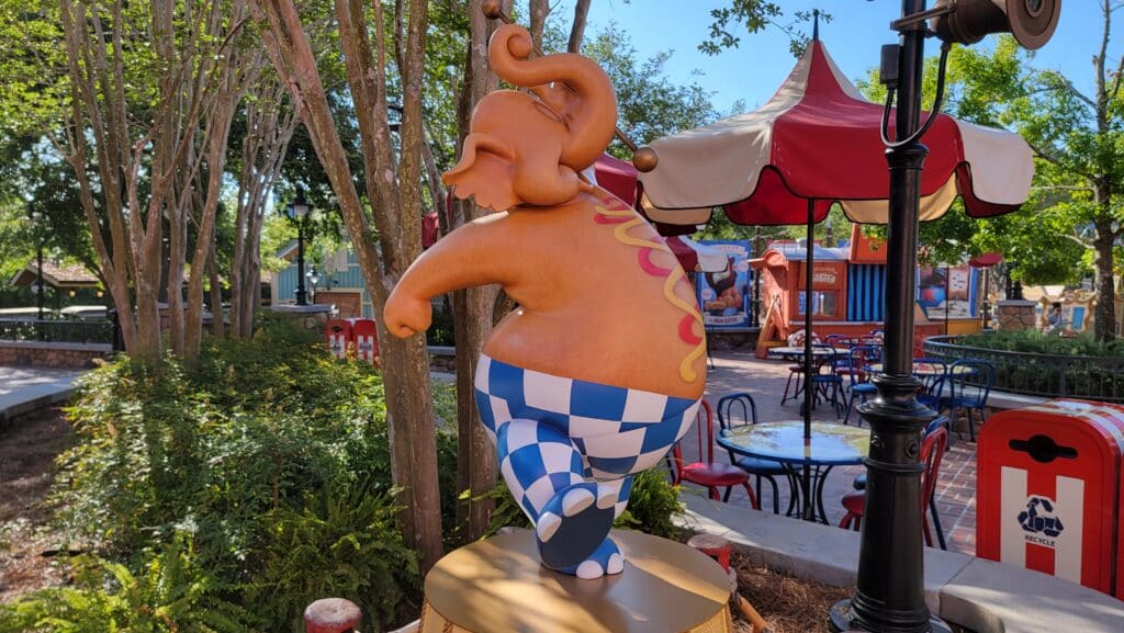 The first of these colorful pachyderms has made its debut and appears to be sporting a guise we can get behind, reminiscent of one of our favorite circus snacks – Popcorn! As others arrive, guests will encounter additional circus-themed Smellephants, featuring fragrances provided by Scentsy, like Churro, Cotton Candy, and more!