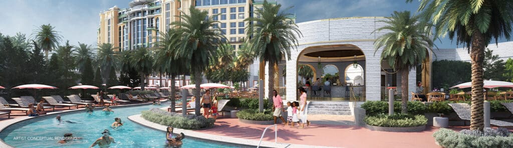 - Lotus Lagoon – a poolside bar and grill where guests can cool off with refreshing cocktails or non-alcoholic drinks and enjoy casual fare options like burgers, salads, sandwiches and more