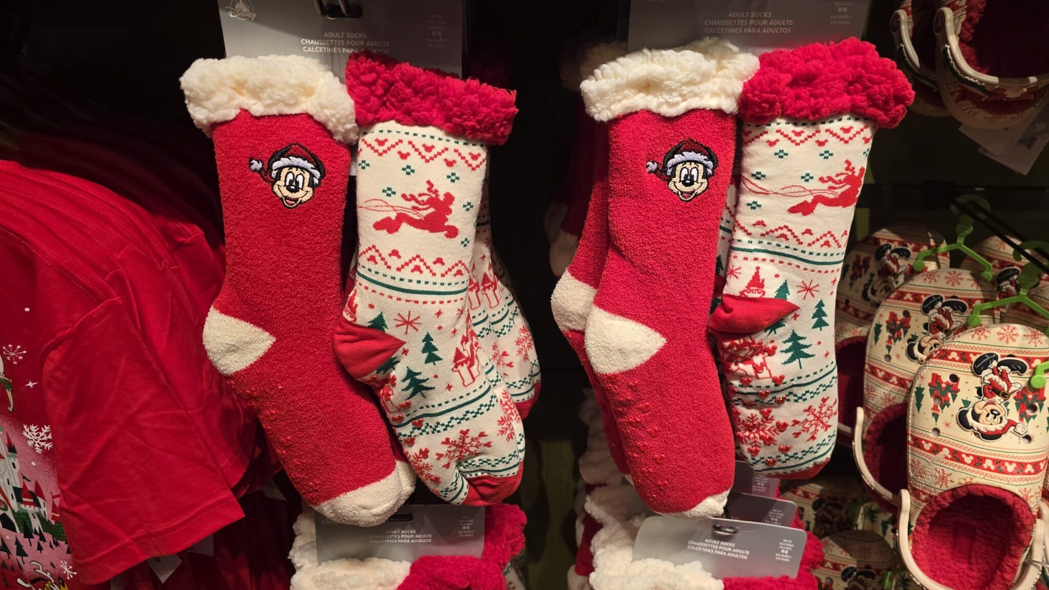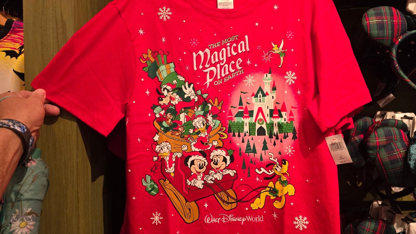 New Minnie Ears, Walt Disney World Spirit Jersey, Holiday Crocs, Shirts, Socks, Ornaments, plush, Tinker Bell tree topper, and more are now available at Disney’s Hollywood Studios and Disney’s Animal Kingdom (where we obtained the images).