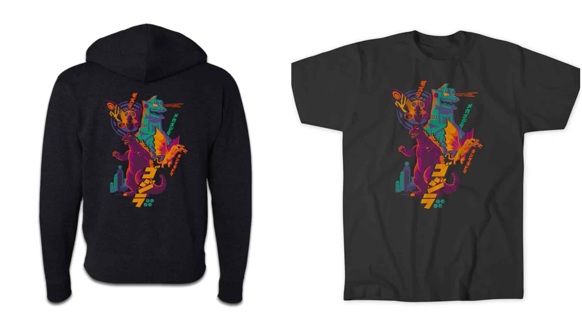 The Godzilla Popcorn Bucket leads a full assault of new, limited-edition merchandise, all featuring bold, neon-drenched artwork showcasing fan-favorite monsters like Mothra, Mechagodzilla, and King Ghidorah: