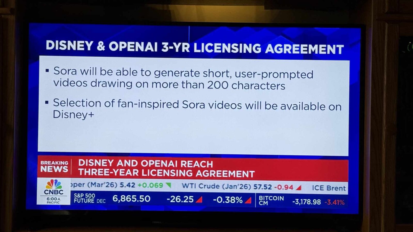 BREAKING NEWS: Disney Bets $1 Billion on OpenAI, Licenses 200+ Iconic Characters to Sora AI Video Platform. The Walt Disney Company (NYSE: DIS) and OpenAI announced a huge, multi-faceted agreement today, marking the biggest partnership yet between a legacy media giant and a leading artificial intelligence firm.
