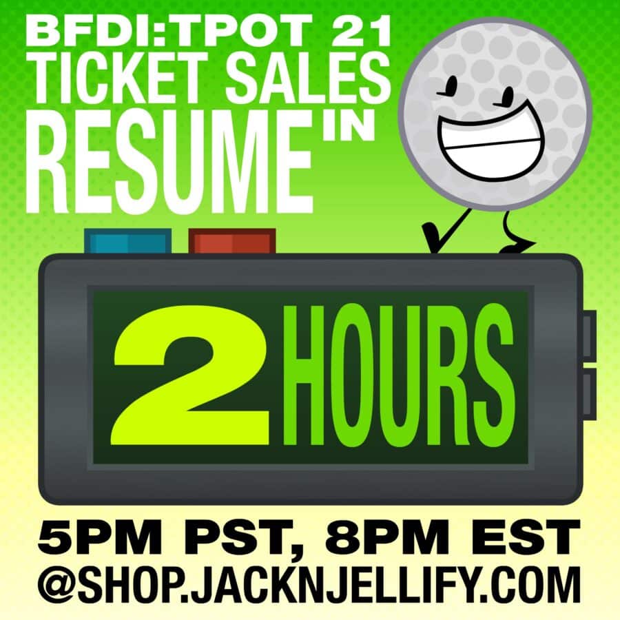 Below is a list of cities for the BFDI: TPOT Episode 21: Event Date: January 29, 2026 Tickets: Available at shop.jacknjellify.com Support: For theater-related inquiries, fans can contact theaters@jacknjellify.com