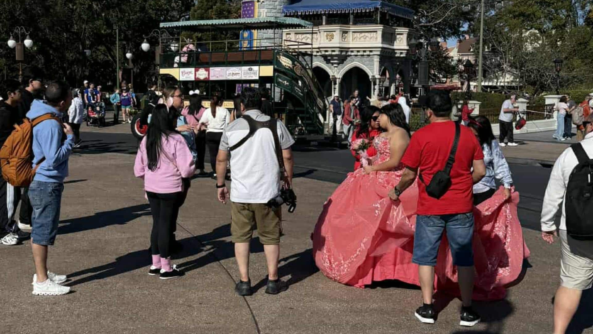 Disney Cast Members Intervene in Unauthorized Quinceañera Photo Shoot at Magic Kingdom. A celebratory morning at the Magic Kingdom took a weird turn today after Disney Cast Members were forced to intervene in an unauthorized professional photo shoot in front of Cinderella Castle. The incident, which involved a family celebrating a Quinceañera, underscores Disney’s recently tightened enforcement of its third-party service policies.