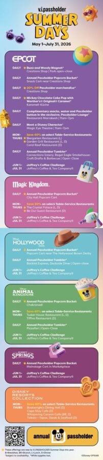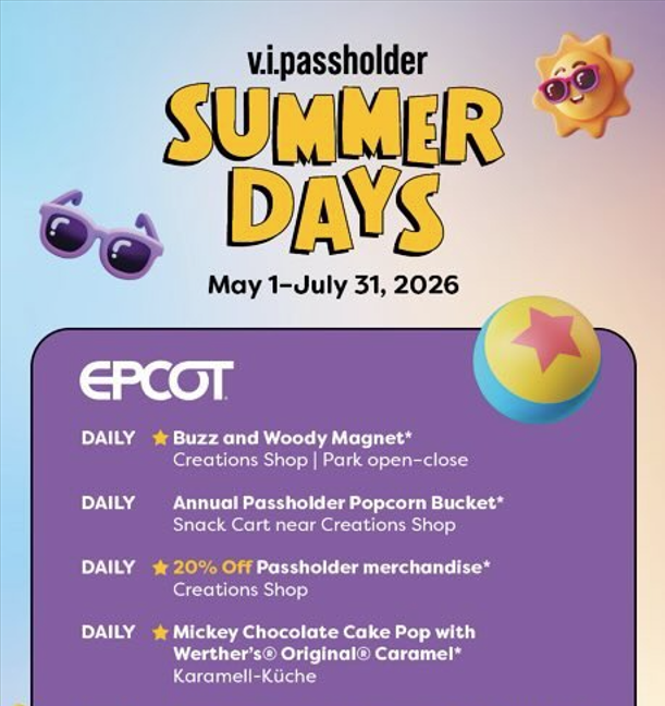 The 2026 V.I.PASSHOLDER Summer Days program is the most expansive version of this event in recent memory. The addition of the Annual Passholder Popcorn Bucket across all five locations is a meaningful win for collectors who have been asking for a Passholder-specific bucket for years. Pair that with a new tumbler, a confirmed Toy Story magnet, returning character meets, and restaurant discounts deep into the 40% range, and this summer is shaping up to be genuinely worth planning around for Florida Passholders.